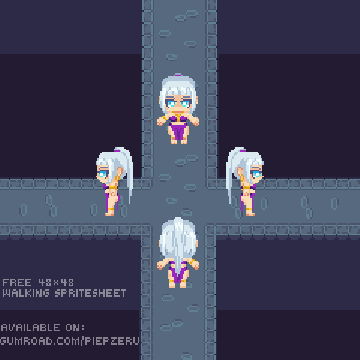 🎮 Join My Pixel Art Adventure! Hello, I'm Piepz and I'm excited to share my very first public spritesheet, "48x48 Top-Down Pixel Art Base - Free Walking Spritesheet". As an artist wanting to make assets available to indie game developers/hobbyists for free, I created this spritesheet to add life and movement to your pixel art characters in games.